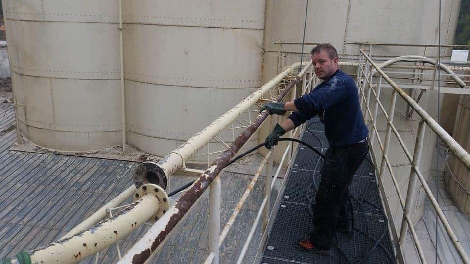 Umweltschonendes Verfahren zur Reinigung von Rohren mithilfe von Wasser unter hohem Druck.